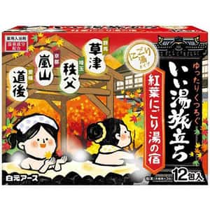 日本Hakugen 白元 溫泉入浴劑 消除疲勞 4種芳香 (柚子茶/櫸木樹/紅楓葉/伊予柑) 12包入 (紅) - 清貨優惠